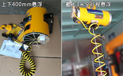 气动平衡器具有两种悬浮特性(在一定范围内可手动无阻力操作,定位准确),一种是上下400mm的悬浮,另一种是最大3米全行程悬浮。