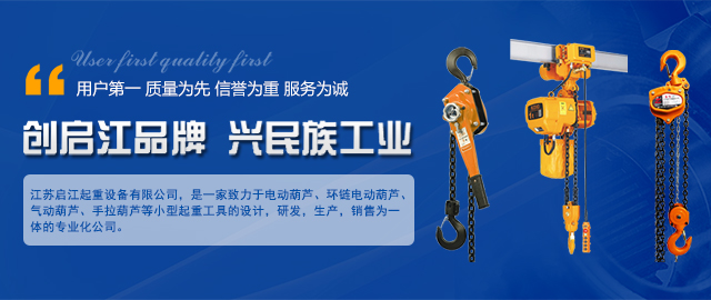 江苏启江起重设备有限公司,是一家致力于电动葫芦、环链电动葫芦、气动葫芦、手拉葫芦等小型起重工具的设计,研发,生产,销售为一体的专业化公司。公司总部位于江苏泰州,日趋发达的经济、便利的交通以及有效地科学发展观,使企业同时具备了天时、地利、人和之优势。